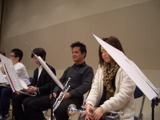 5人居って・・・カメラ目線1名 ピース3名。 さすがトランペット。 |